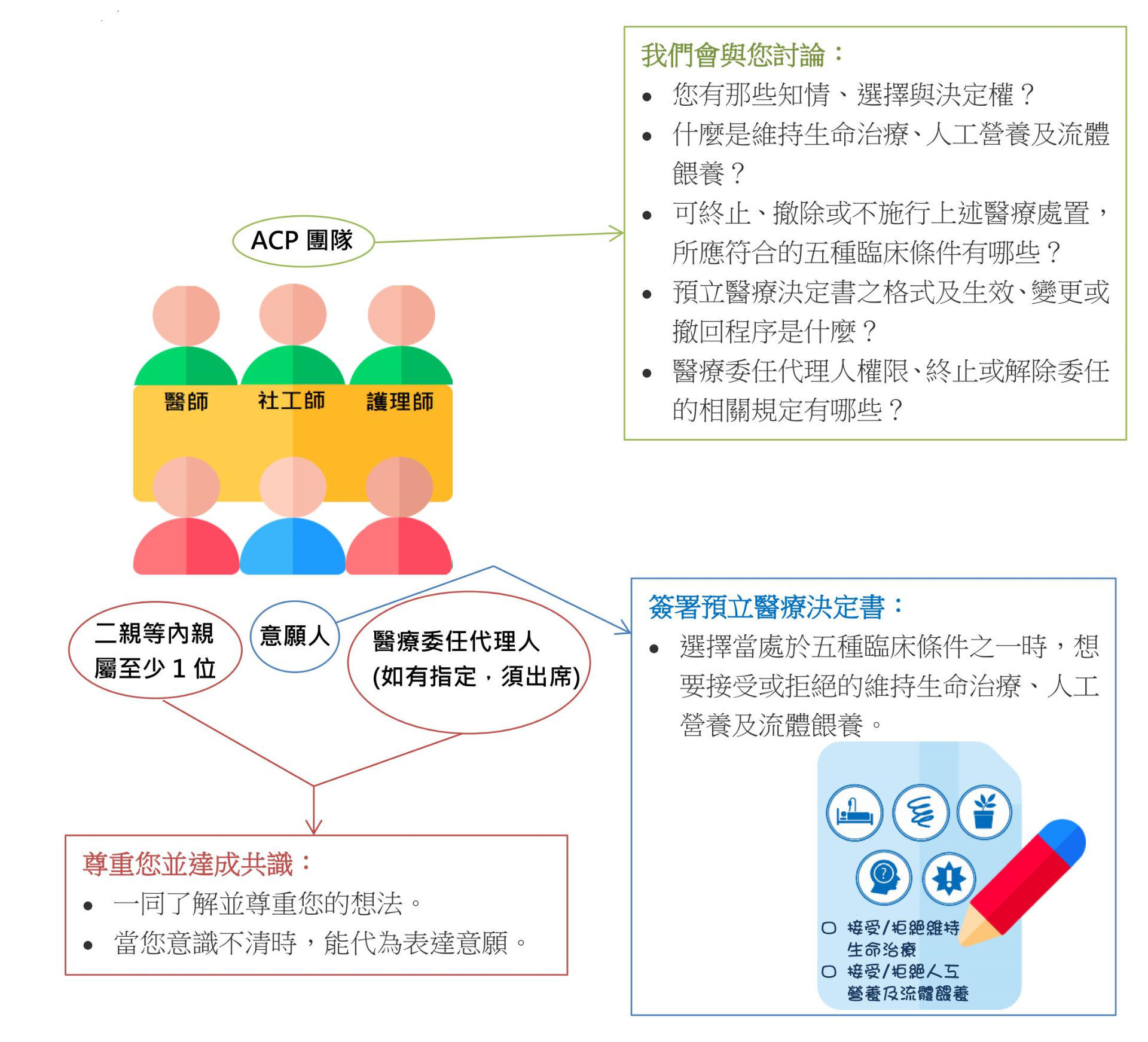 邀請一位二親等內親屬,向他說明參與預立醫療照護諮商對您的重要性!