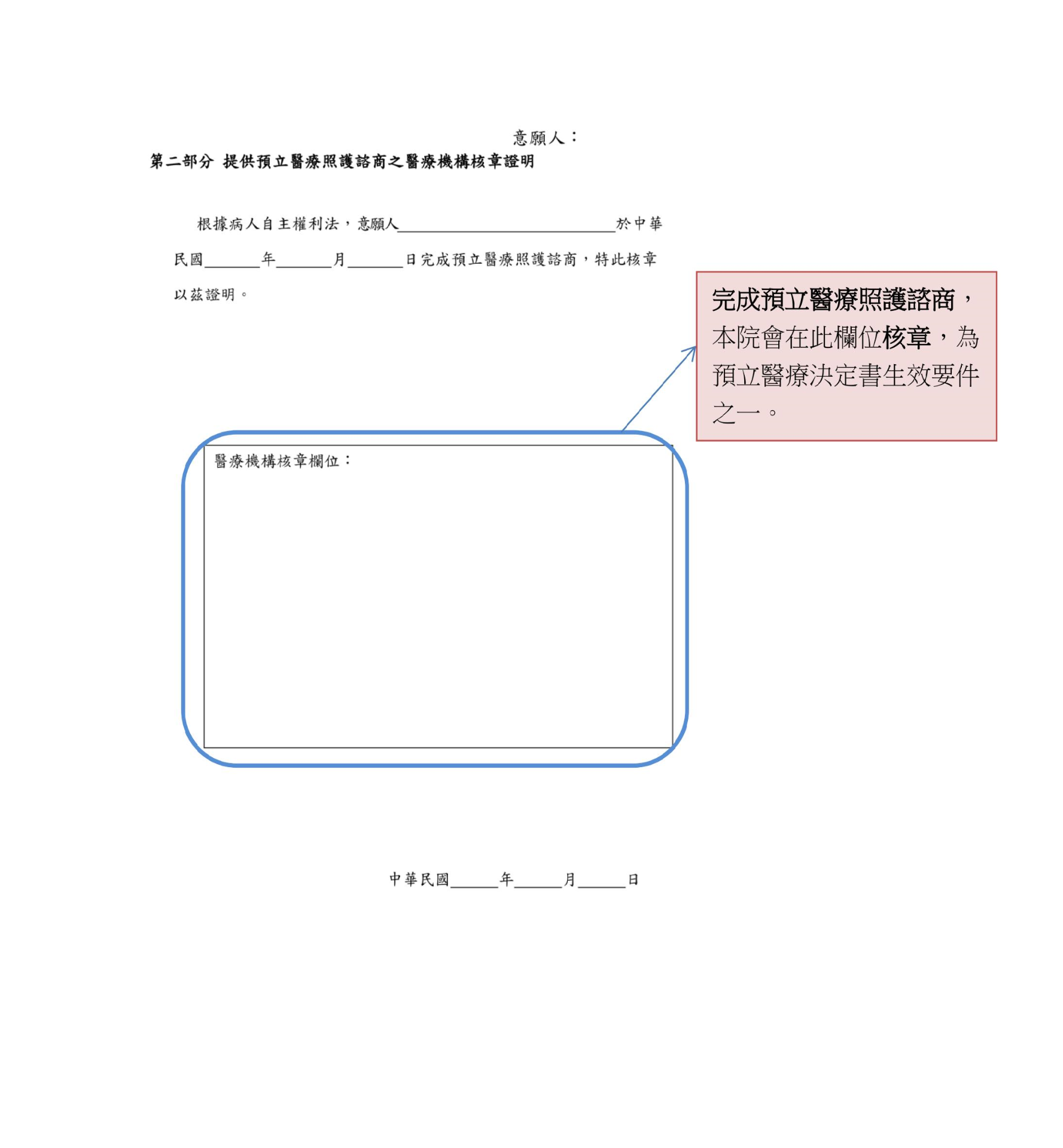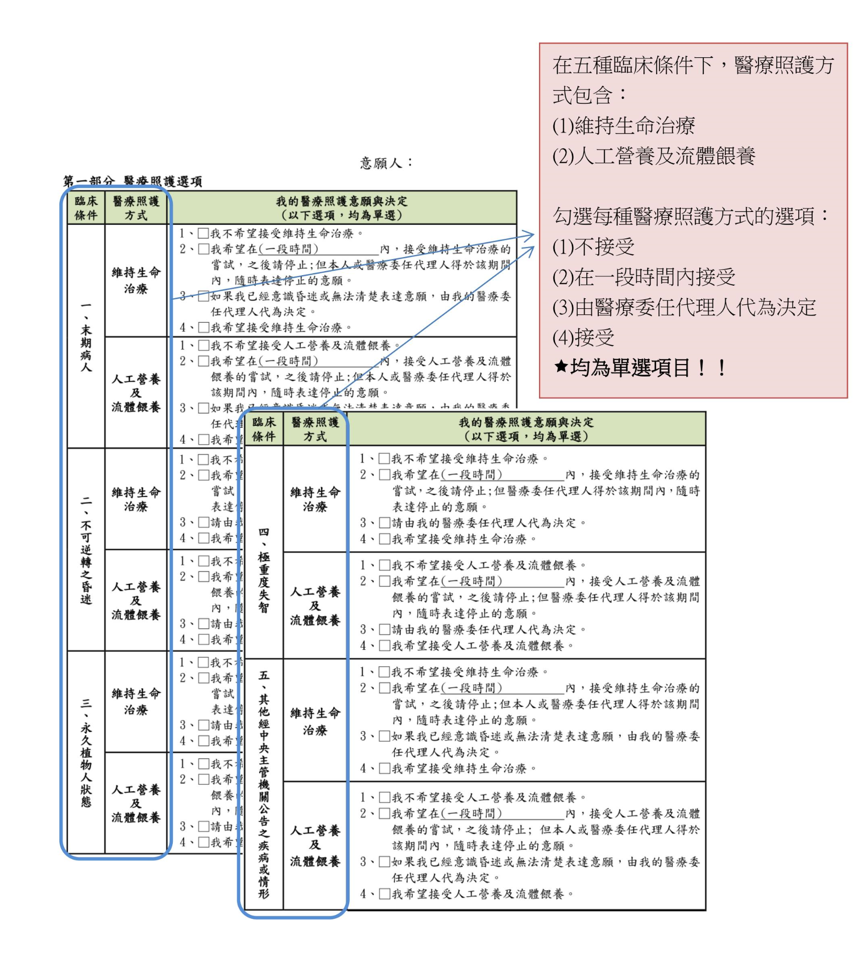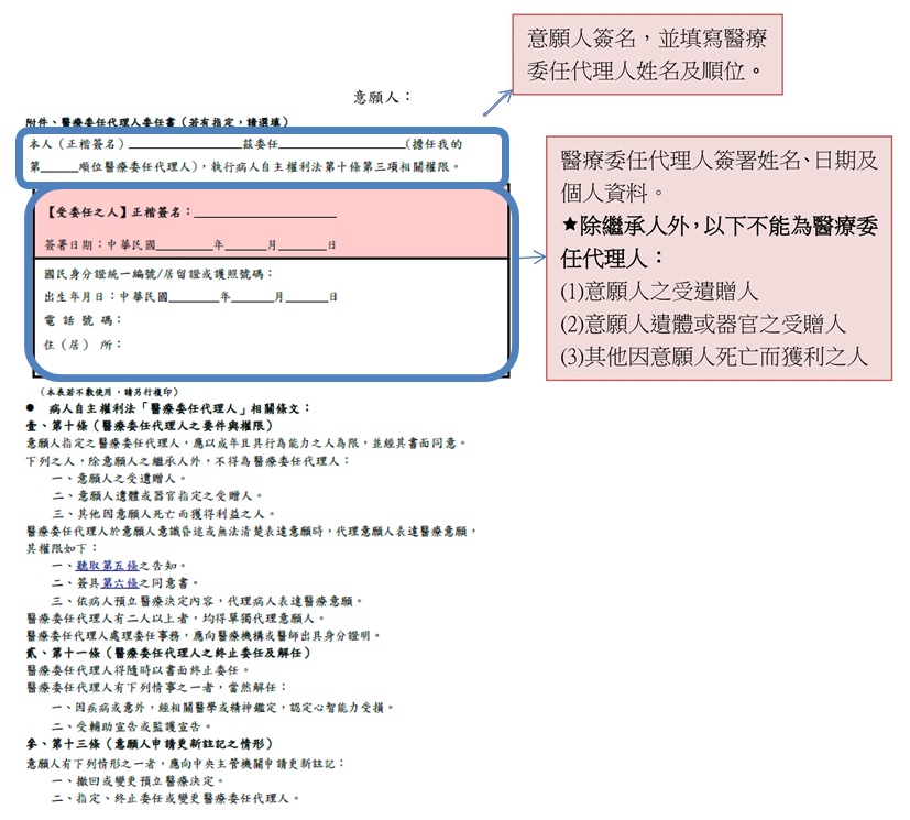 「預立醫療決定書」格式與填寫說明: